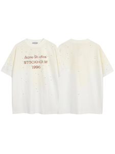 夏の新型AC潮牌1996文字は古い磨かれたホットドリルのゆるい半袖男女カップルのtシャツを作る