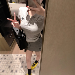 ce25ss 春夏新作 凱旋門刺繍ポロ半袖+キュロットスーツ パンツベルト付き