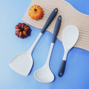 2025新型シリカゲル食品級料理シャベル耐高温スプーン深灰色白色シンプル四点セット調理器具