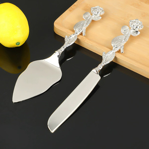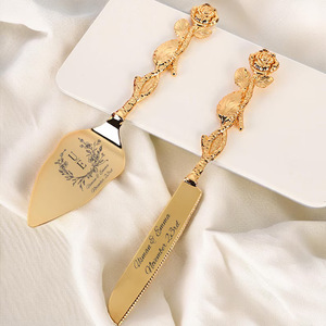 etsy パーソナライズされた彫刻ローズゴールドシルバーハンドルケーキナイフとスパチュラセットホームケーキピザナイフプレミアム