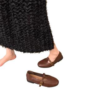 香港感英倫小革靴女性春2025新型平底軟皮茶色復古楽福靴