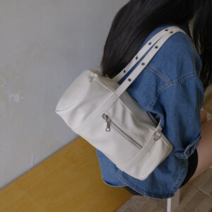 圆通手提手拎包2025新款铆钉肩带女士单肩包复古欧美枕头包腋下包