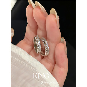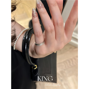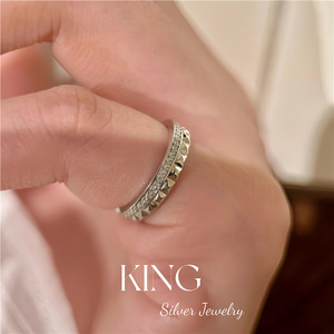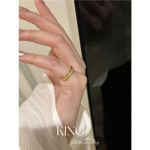 187菱格纹尾戒半钻半素S925银镀金女小众精致时尚轻奢戒指