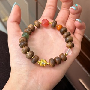 レトロでファッショナブル、絶妙で多用途な塩源瑪瑙老山白檀クリスタルブレスレット、女性用のハイエンドビーズブレスレット