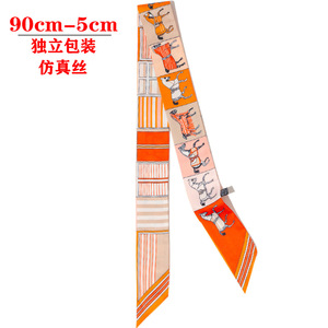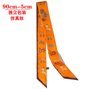 新しい高級感のあるプリントシルクスカーフ、長尺装飾、シンプルなスタイル、イミテーションシルクスカーフ、リボンスカーフ