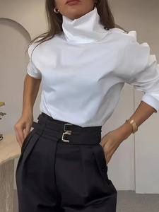 2025年新製品アマゾンクロスボーダーヨーロッパとアメリカのハイカラーオフショルダーレディーストップス、さまざまな着用方法、ゴールデンボタンデザイン