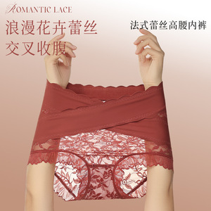発券可能なセクシーレースショーツ、レディースハイウエストセクシーフレンチクロスデザイン、軽くお腹を引き締めるショーツ、抖音工場直販