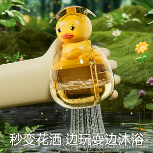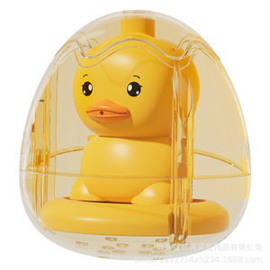 赤ちゃんのお風呂のおもちゃの小さい黄色のアヒルの子は雨が降って卵の男の子の女の子を噴き出します。