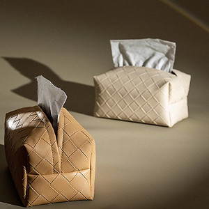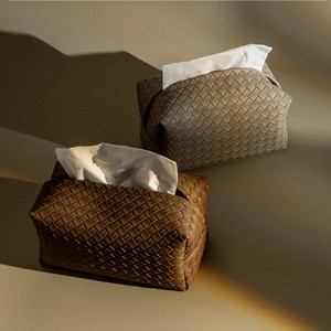 軽くて豪華なハイエンドの織りティッシュボックス、リビングルームのクリエイティブなレザーペーパーボックス、家庭用の高価値の織り模様のティッシュボックス