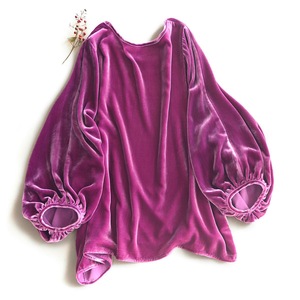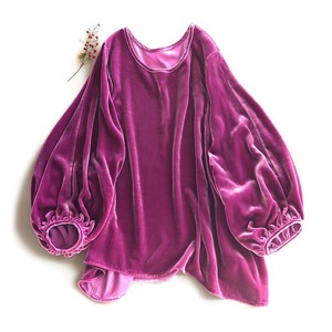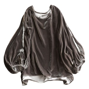 一线真丝绒纯色宽松圆领t恤女春季新款金丝绒灯笼袖大码上衣