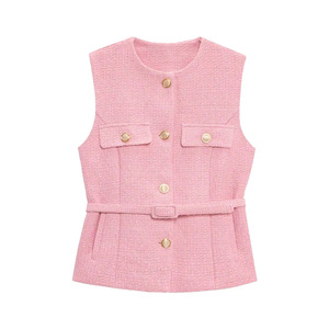 外国貿易卸売春の新しいヨーロッパとアメリカンスタイルの女性の金属バックルベルト付きパンクテクスチャラウンドネックベスト