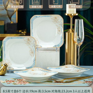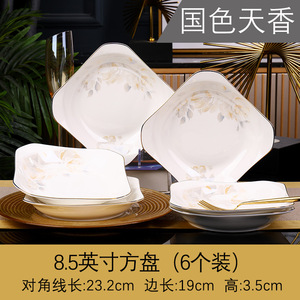 セラミックスクエアプレート、家庭用スクエアディッシュプレート、ゴールド塗装、家庭用ディッシュプレート、景徳鎮食器、シンプルで軽い高級感