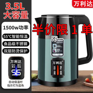 Wanlida 電気ケトル 304 ステンレス鋼二層抗火傷ケトル大容量ケトル家庭用耐久性