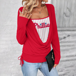 アマゾンヨーロッパとアメリカの新しいプリント無地長袖レディース大きなドロップカラールーズトレンディなフェイクツーピーストップ276