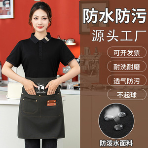 飲食の女性の半身の短いエプロンのレストランは料理を伝えます。