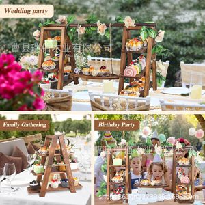 木製トレイ収納ラックカップケーキスタンドパーティー誕生日アフタヌーンティーデザートディスプレイスタンド装飾多層トレイ
