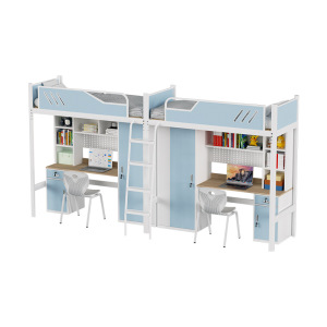 学校のアパートのベッドの下のテーブルの二人の組み合わせベッドの学生寮の従業員はベッドの下で鉄のベッドを厚くします。