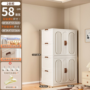 幅58CM - 2層ワードローブ + 1層収納ボックス [ハンガー20本無料]✦✦