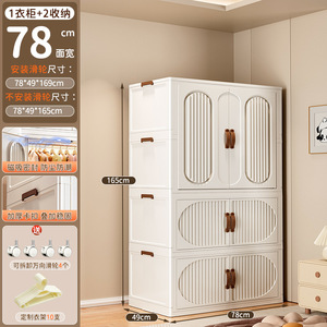 幅78CM - ワードローブ1段+収納ボックス1段 [ハンガー10本無料]✦✦