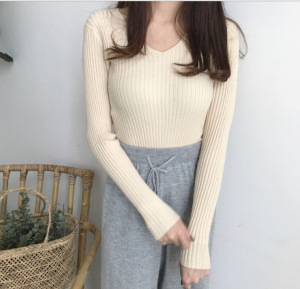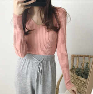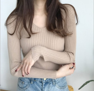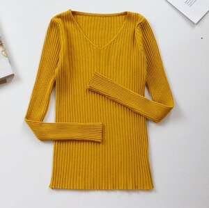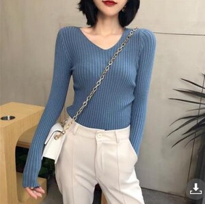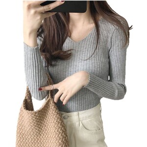 V ネック厚みのあるスリムニット女性の 2025 夏と秋の新しい長袖暖かい底シャツプルオーバースリムセーター Tシャツ女性
