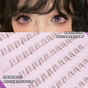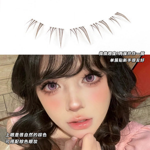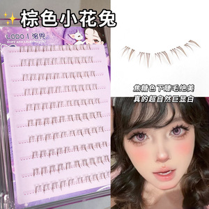 無糊自己接着茶色小花兎下まつげカラメルブラウン純欲優しい透明茎自然単クラスタ偽まつげ女