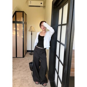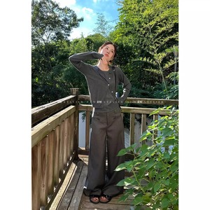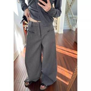 大きいサイズの韓国語のズボンの広脚のズボンの女性2025新型の春の百合の垂れ下がった感じのズボンのゆったりしている灰色のカジュアルなズボン