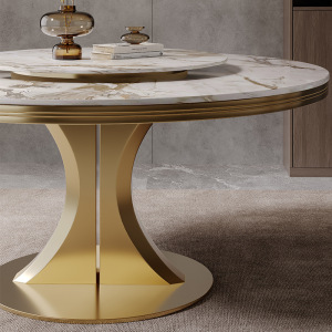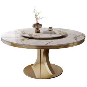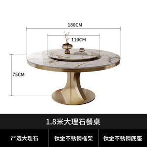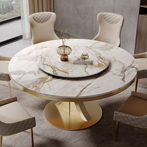 轻奢家用大理石餐桌椅组合别墅餐厅高端带转盘设计师款圆桌饭桌