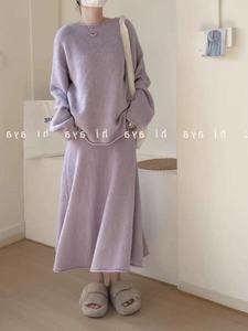 韓国風レイジールーズニットファッションスーツレディースワンショルダートップAラインフィッシュテールヒップスカート2点セット