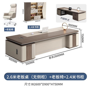 2.6m サイドキャビネットなしボステーブル + ボスチェア + 6 ドアキャビネット
