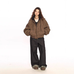 欧米のヒップホップの二重の偽の2つの帽子の革のジャケットの上着の女性の春秋のoversizeのごろつきの帥の百合の飛行服