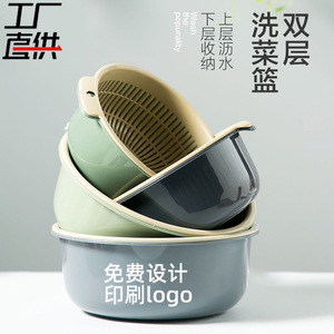 二層式洗い桶水切りかご キッチン家庭用多機能プラスチック製丸型水切りかご用品 水切り神器