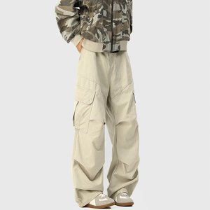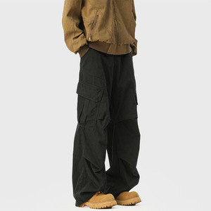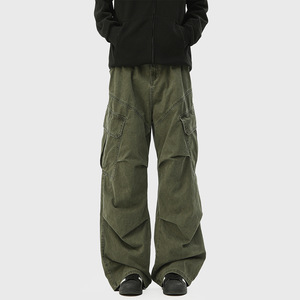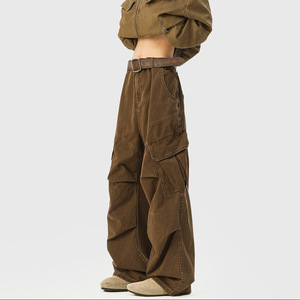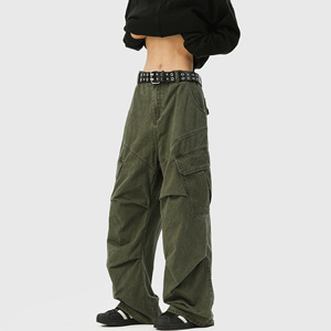 美式复古水洗褶皱工装裤男春秋季潮牌痞帅高街宽松阔腿休闲长裤子