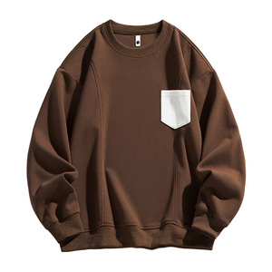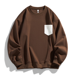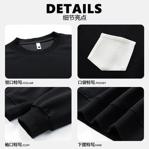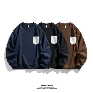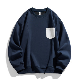 男士春秋新款大码圆领卫衣男口袋装饰日系套头百搭潮流长袖男装