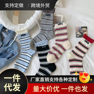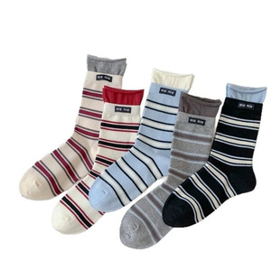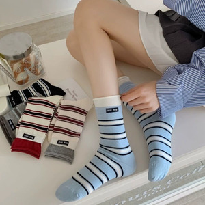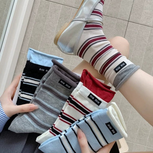 諸曁春夏レディースソックス新作ストライプミッドカーフソックスダブルローマン口miuシリーズパイルソックス万能ロングソックスレディースソックス