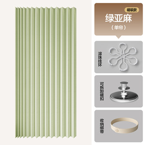 【両面マグネット吸着】グリーン折りたたみシングルカーテン+シルバーボールフック