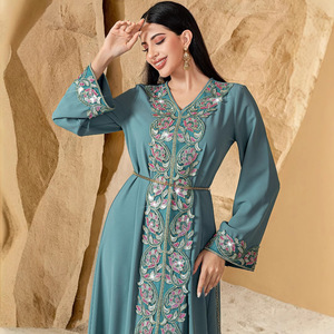 40761 クロスボーダー中東女性の 2025 新しいイスラム教徒ローブドバイ刺繍ビーズイブニングドレス