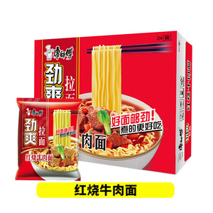 康師傅のインスタントラーメンの力爽ラーメンの袋の中の赤焼の牛肉の麺のカップラーメンの夜食のインスタント食品の箱の卸売りは碗を送ります。