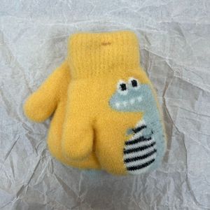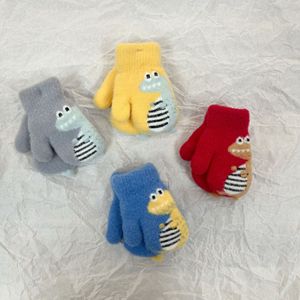 双层儿童保暖手套卡通可爱恐龙写字秋冬学生男孩女童挂脖儿童款