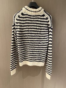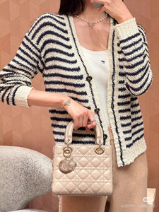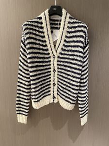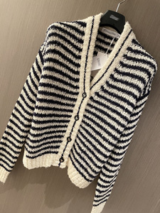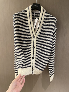 南油版本D家25款春夏名媛风条纹V领镂空短款针织开衫毛衣2025新款