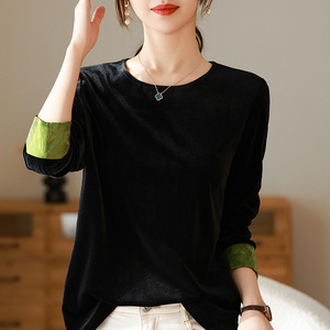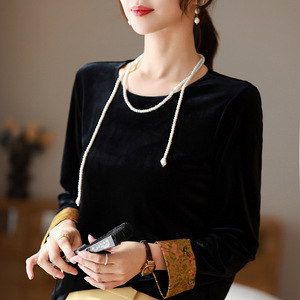 2025年春夏新作ベルベット新中国風丸首長袖袖口ジャカードカバー