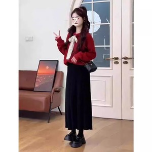 赤いセーター+黒いスカート