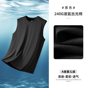 液体アンモニア冷感男性肩袖tシャツベスト夏潮牌フィットネス運動スウェットシルク綿カン肩tシャツ