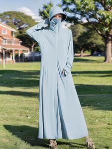 黒ゴムの日焼け止め服の長いタイプの女性の夏の紫外線防止2025の新型の氷の糸の通気性の薄いブラウスの全身の日焼け止め服