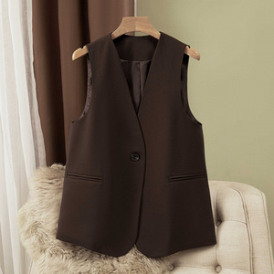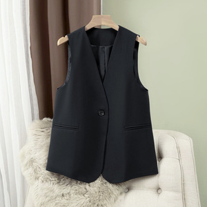 女性用黒スーツベスト、春と秋の新作、大きいサイズのベスト、襟付きベスト、薄手の気質スーツベスト