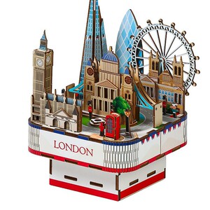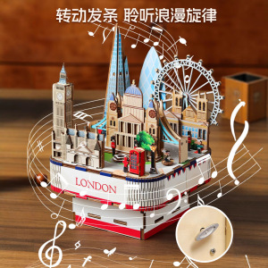 フランスロンドンの古典的なオルゴール立体組み立て知育玩具、手動脳トレーニング子供向けクリエイティブギフト