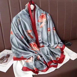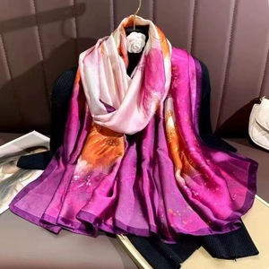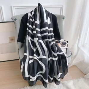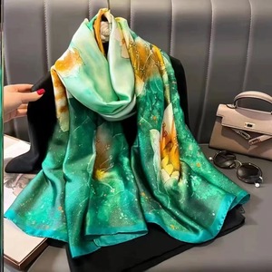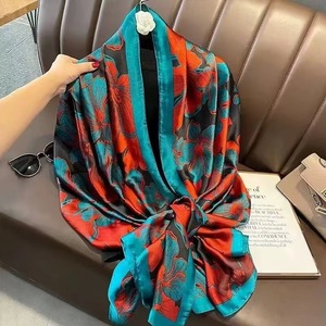春、夏、秋の新しい韓国スタイルの模擬シルクスカーフ女性用装飾多用途ショール日焼け止めビーチタオル卸売在庫あり