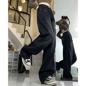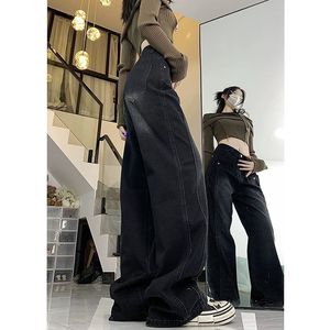 街头潮流高腰直筒阔腿牛仔裤女春秋季新款宽松显瘦拖地牛仔裤潮