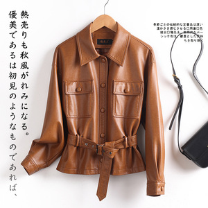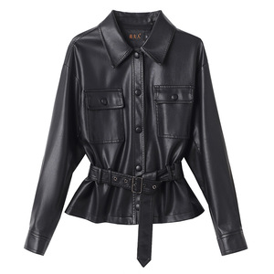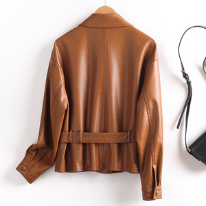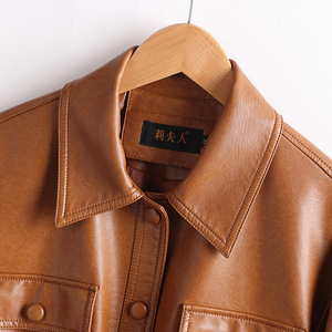 2025年と秋の新型海寧の小さい皮の服の小さいスーツの女性の短い襟はやせている機関車の大きいサイズの皮のジャケットのコートを現します。