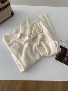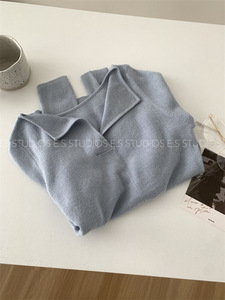 Pure Desire ラペルシルクウールセーター、フェミニンでスリムなVネックボトリングシャツ、秋