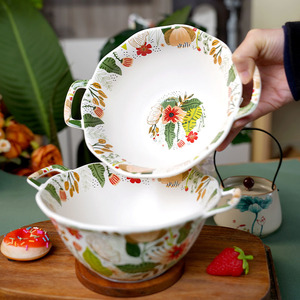 部屋の七色の雲の花の双耳の碗の1000mlの大容量の陶磁器の高温に耐えるスープの碗【破損して再発します】